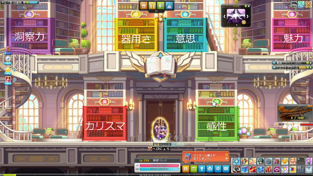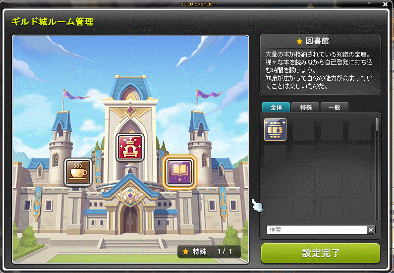 図書館はいわゆる特殊ルームという機能付きの部屋になり、放置することで性向を上げることができます。