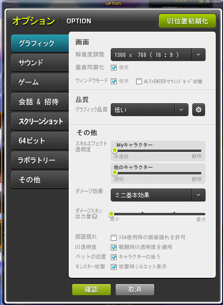 メイプルストーリーのゲームクライアント側でできる設定で、画面表示がなるべく軽くなるように設定します。また、画面外に出していたコメント欄を画面内に変更しました。