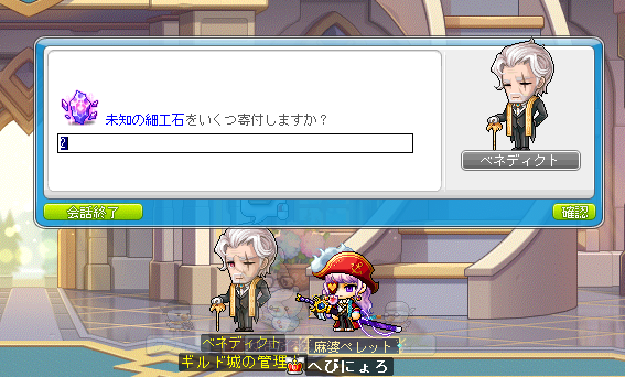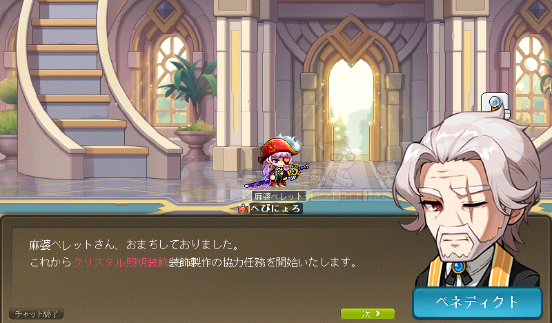 ある日ベネディクトに話しかけると、小型装飾制作の協力任務というクエストが発生していました。