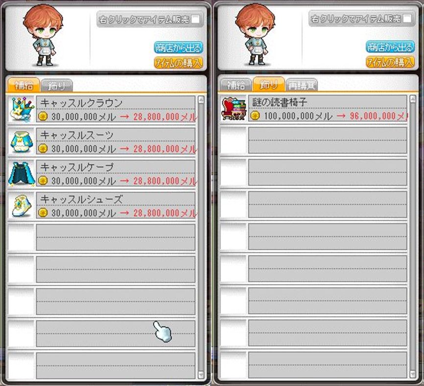 次はオリバー君。ここでしか買えない装備アイテムと椅子を売っています。