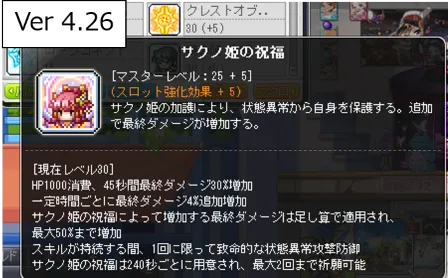 ・サクノ姫の祝福 マスターレベル基準、最終ダメージを15%から30%に上昇し、最終ダメージ上昇周期を4秒から7秒に変更しました。