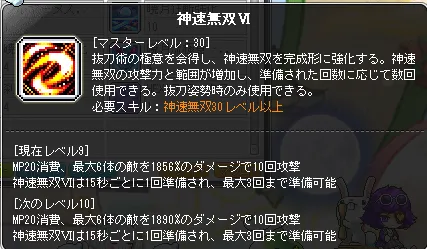 ところで、ハヤト必須技能の飛燕(上ジャンプ)キャンセルを神速無双で行う場合、スキルのCTが明けている状態でないとキャンセルできません。 一方でマスタリーコアを開放した後は、スタックが無い、なおかつCT中でのみ飛燕キャンセルが行えるようです。(フレンド提供tips)