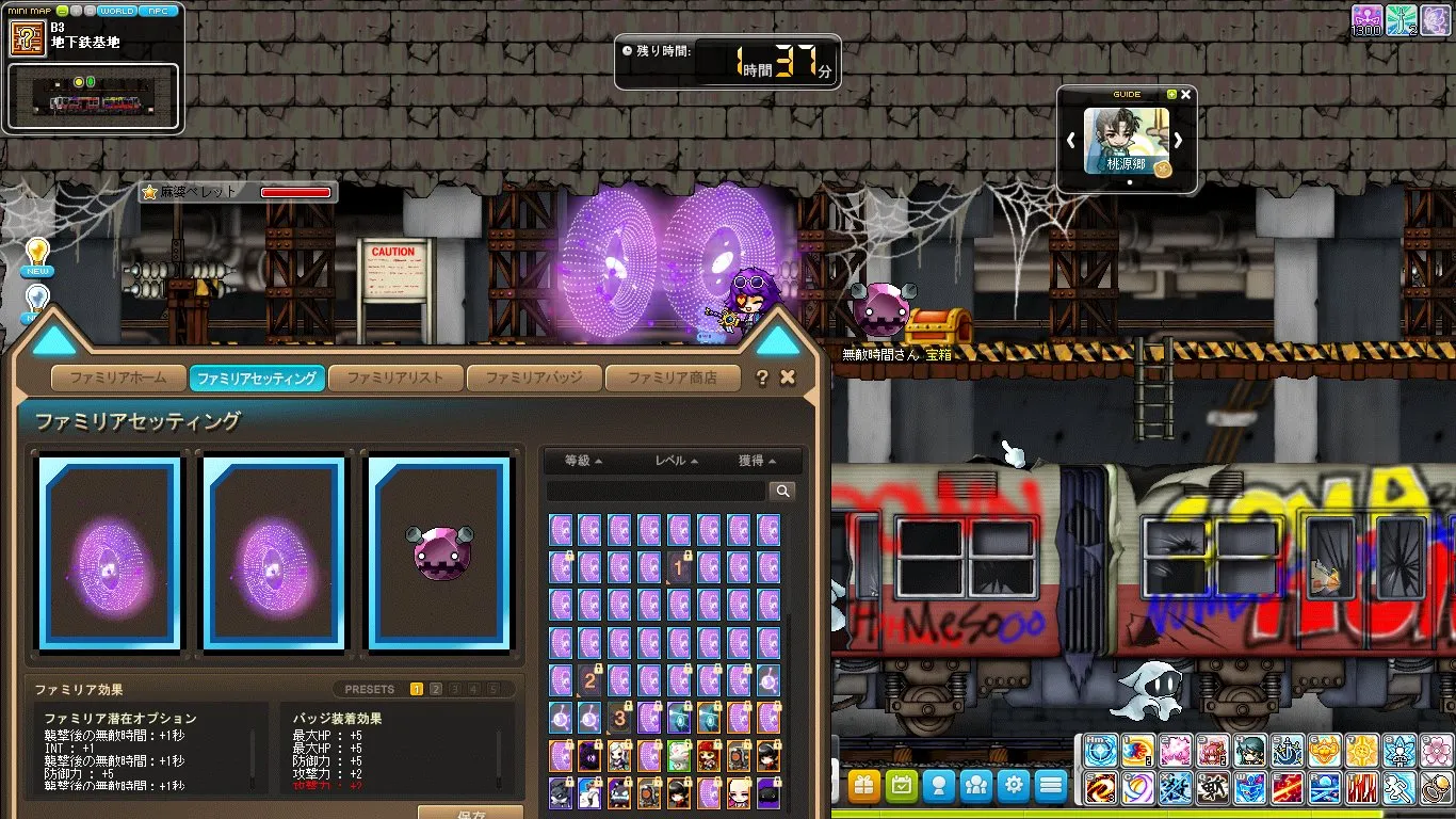 少なくともシュミの無くしたコインではレアファミリア潜在無敵時間+1秒が有効です。3体出して無敵時間+3秒。へたくそな私でも何とかなりました。