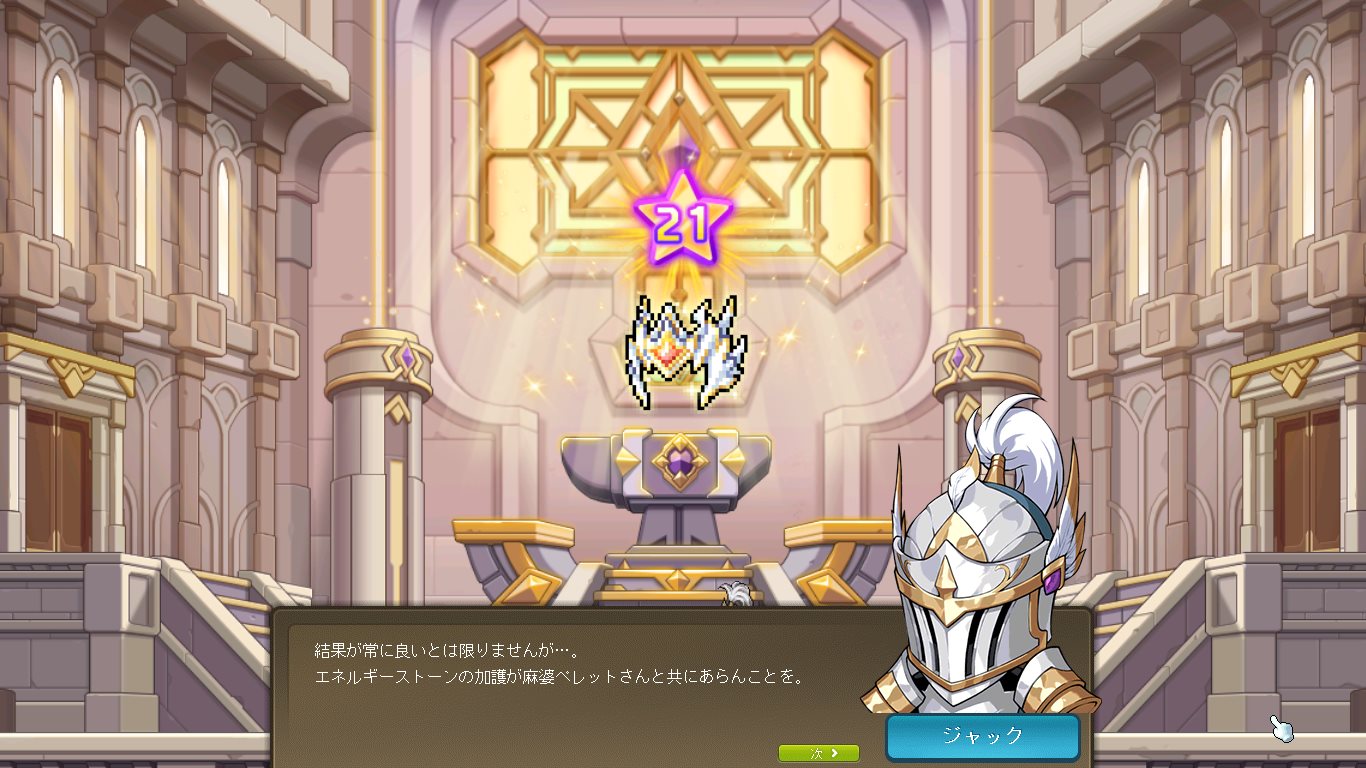 へびにょろはギリギリに祭壇が完成したので盛り上がりもひとしお。 私も折角のお祭りなので全財産5gを握りしめ参戦、運よく初20☆装備が完成したりしました。