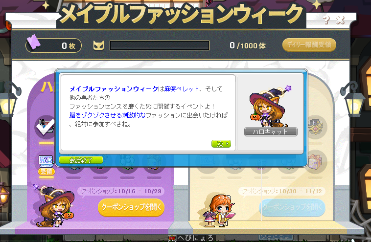 ここ2年ほどハロウィンイベントが無かったので首をながくして待ち望んでおりました。