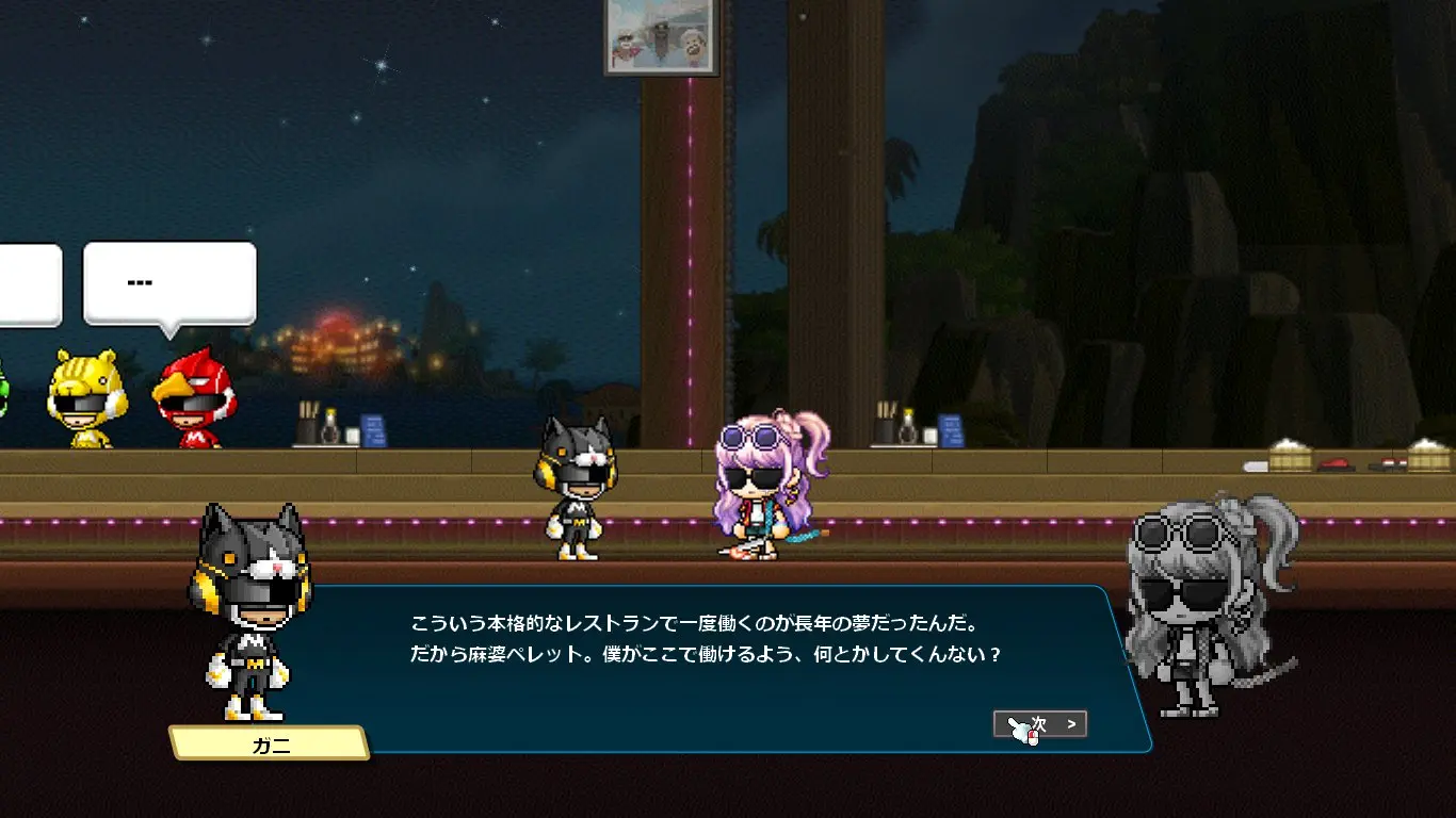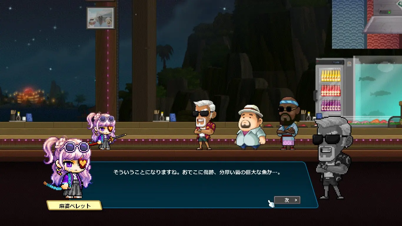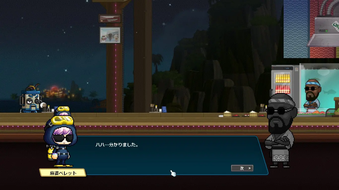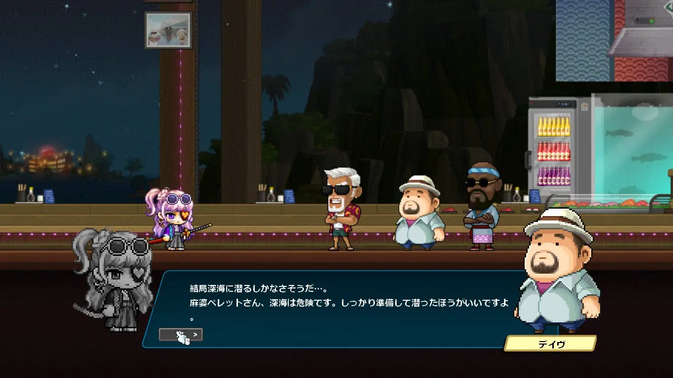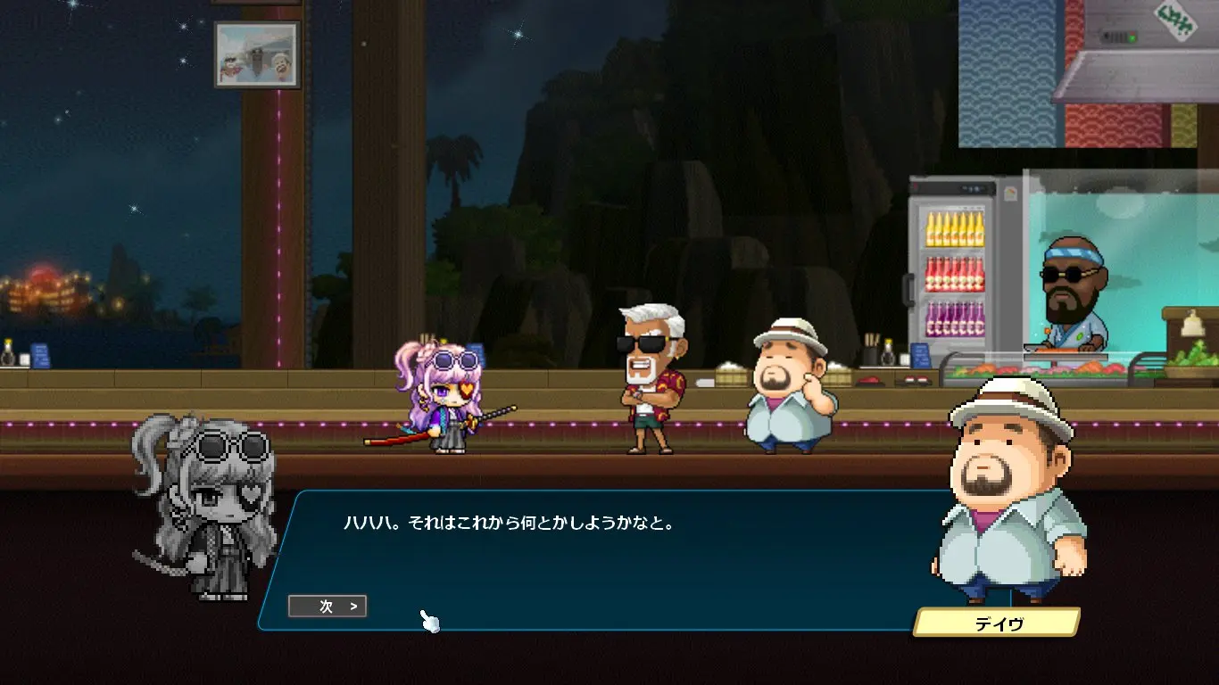 ストーリーはデイヴ・ザ・ダイバーのキャラクターの話になるかと思いきや、ほぼほぼメイプルのキャラクター同士の関係性の深堀をするストーリーでした。なんでこんな大事なことコラボでやるの?