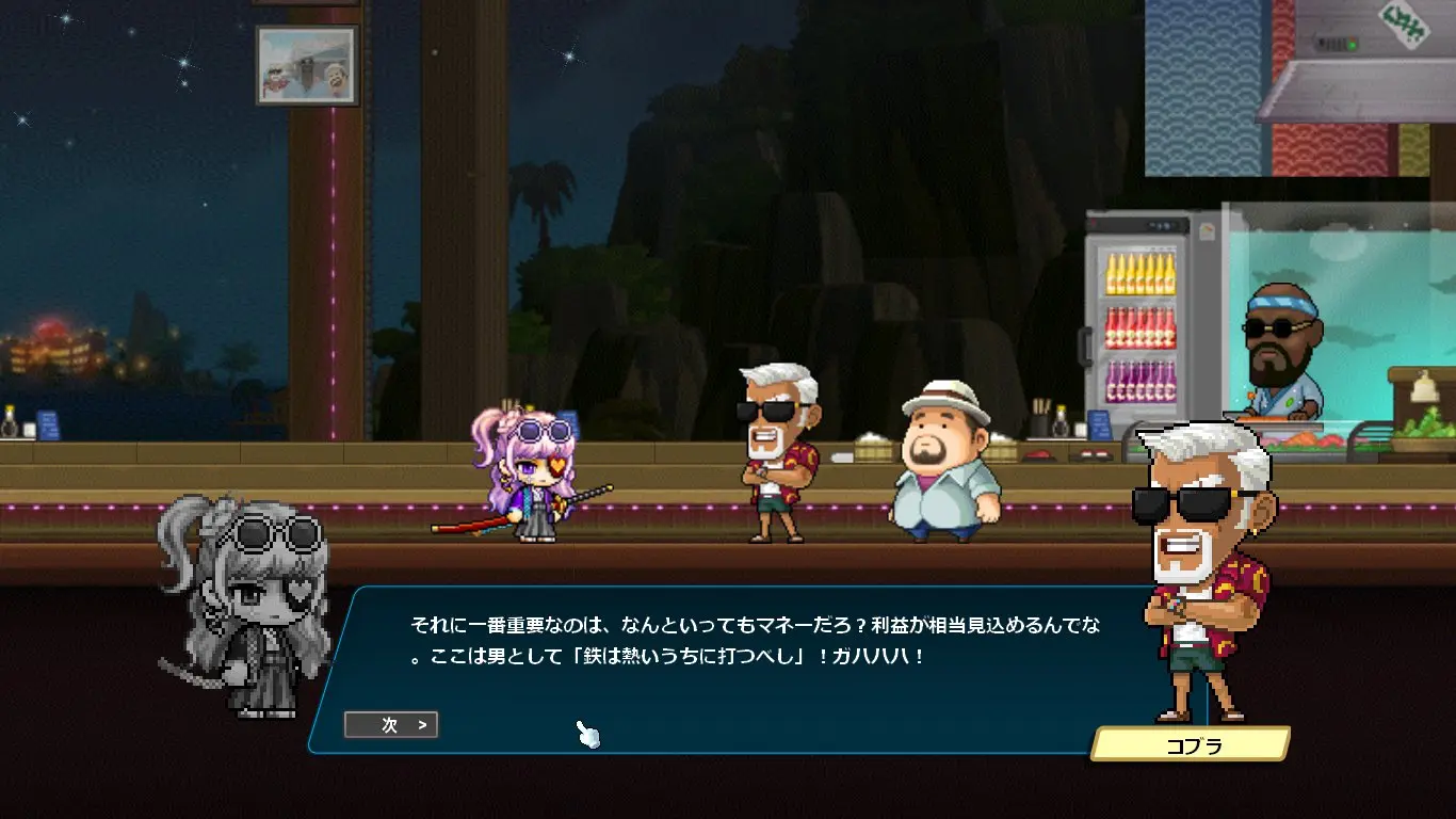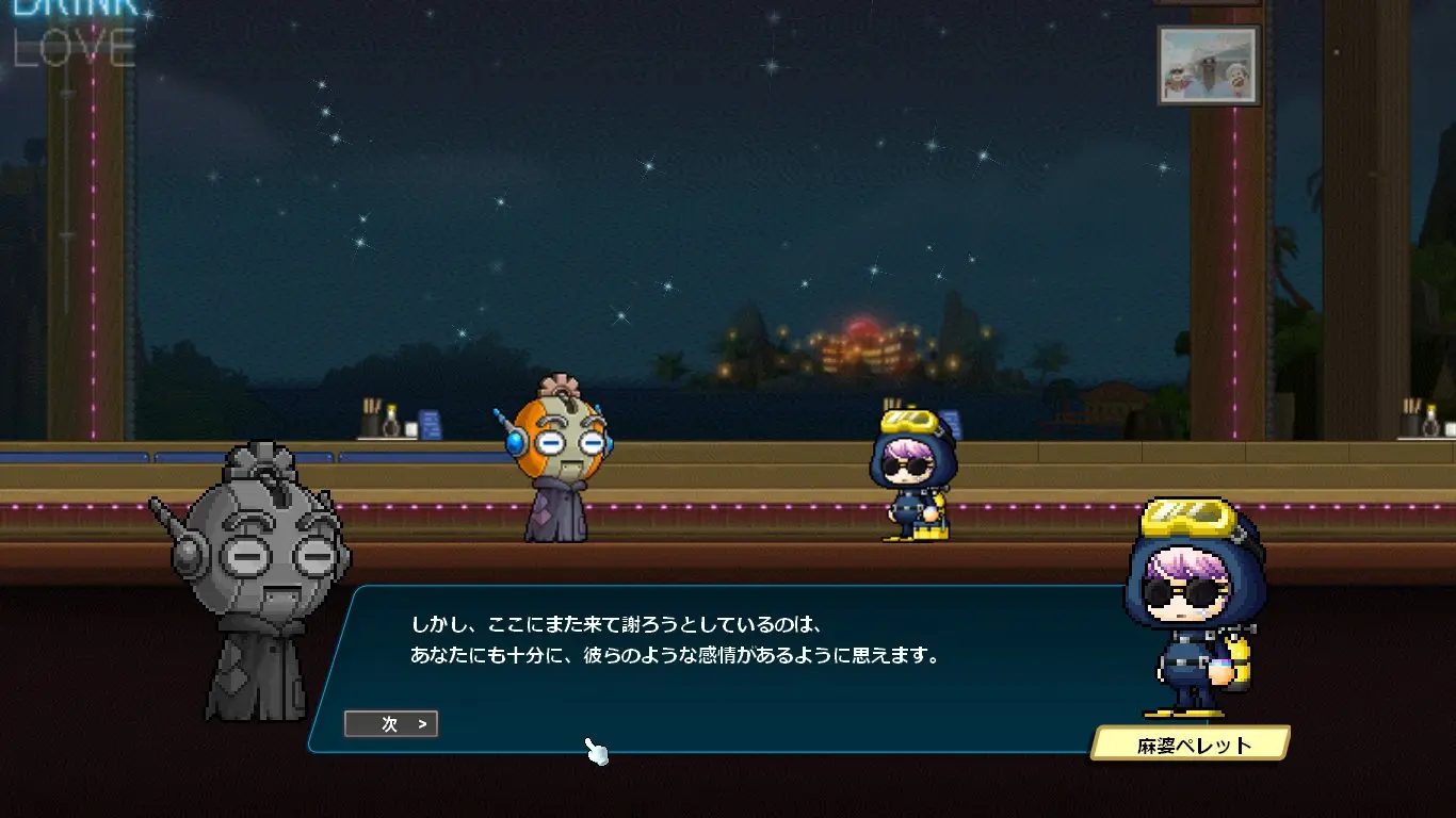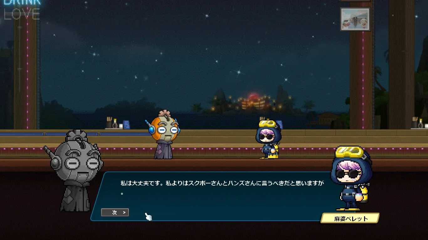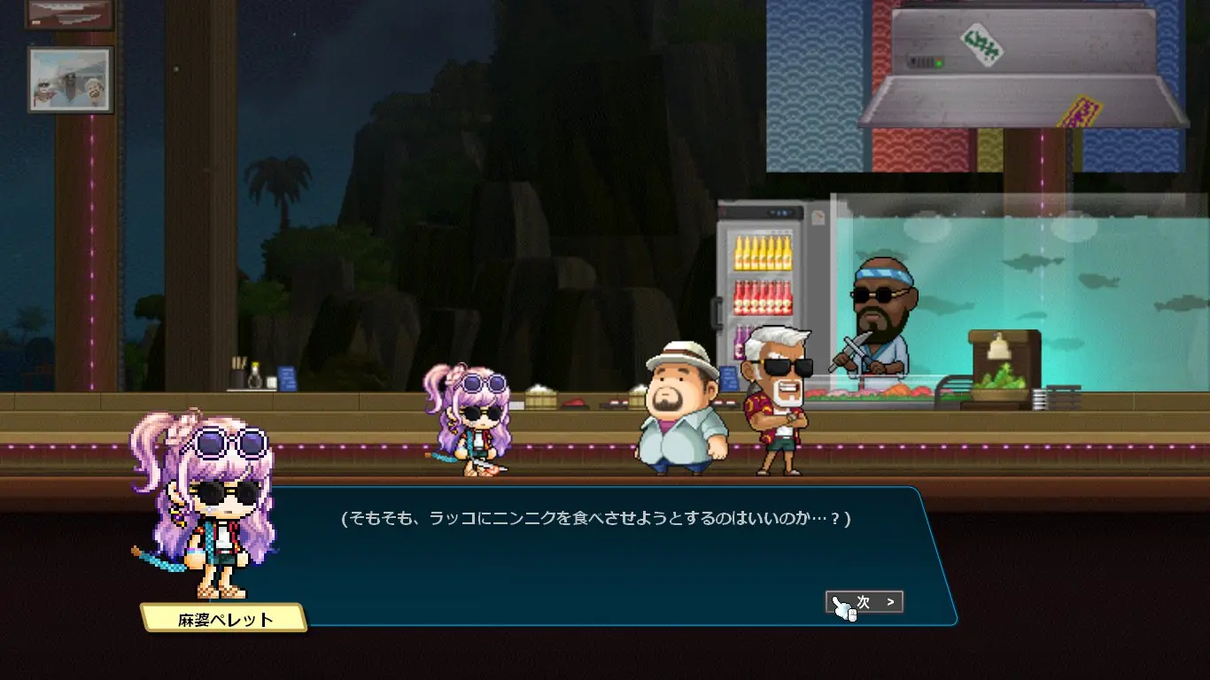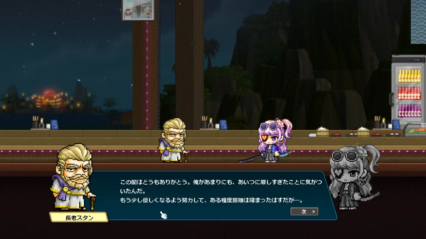 ストーリーはデイヴ・ザ・ダイバーのキャラクターの話になるかと思いきや、ほぼほぼメイプルのキャラクター同士の関係性の深堀をするストーリーでした。なんでこんな大事なことコラボでやるの?