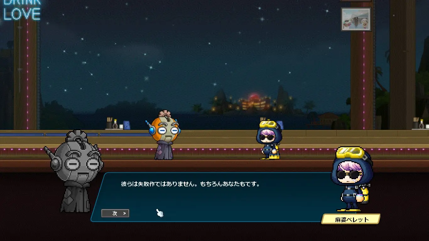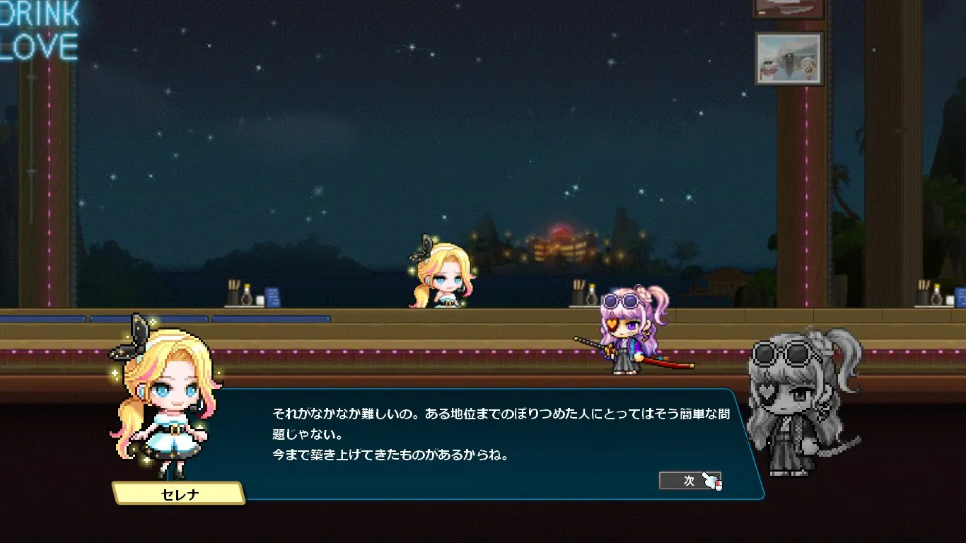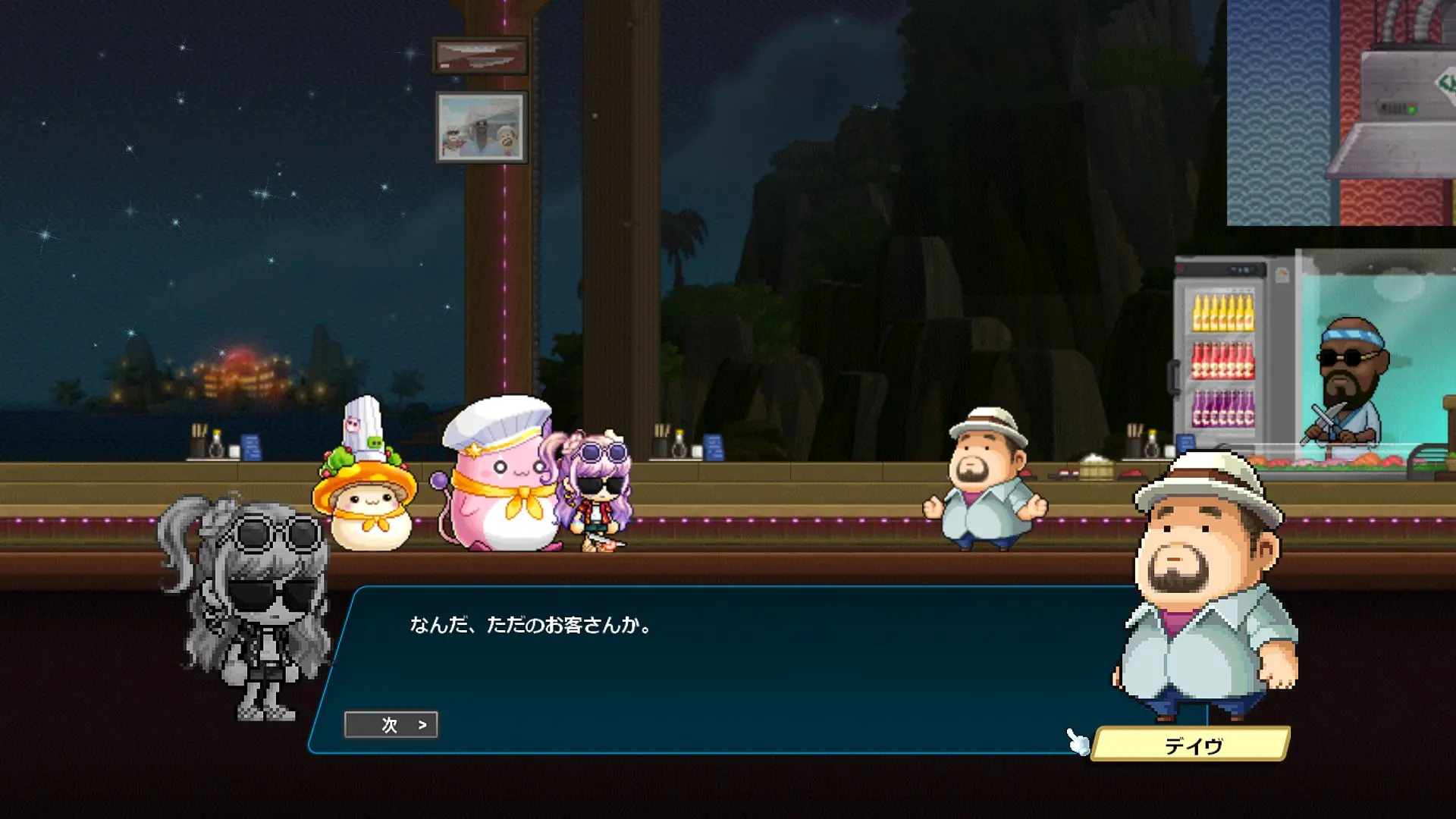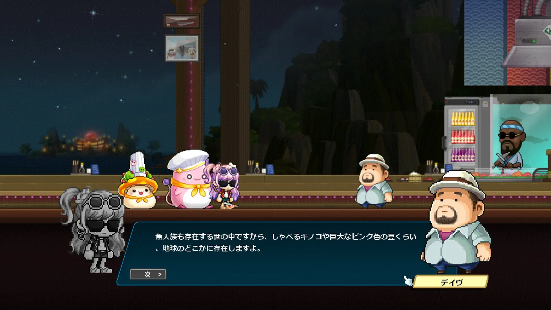 ストーリーはデイヴ・ザ・ダイバーのキャラクターの話になるかと思いきや、ほぼほぼメイプルのキャラクター同士の関係性の深堀をするストーリーでした。なんでこんな大事なことコラボでやるの?