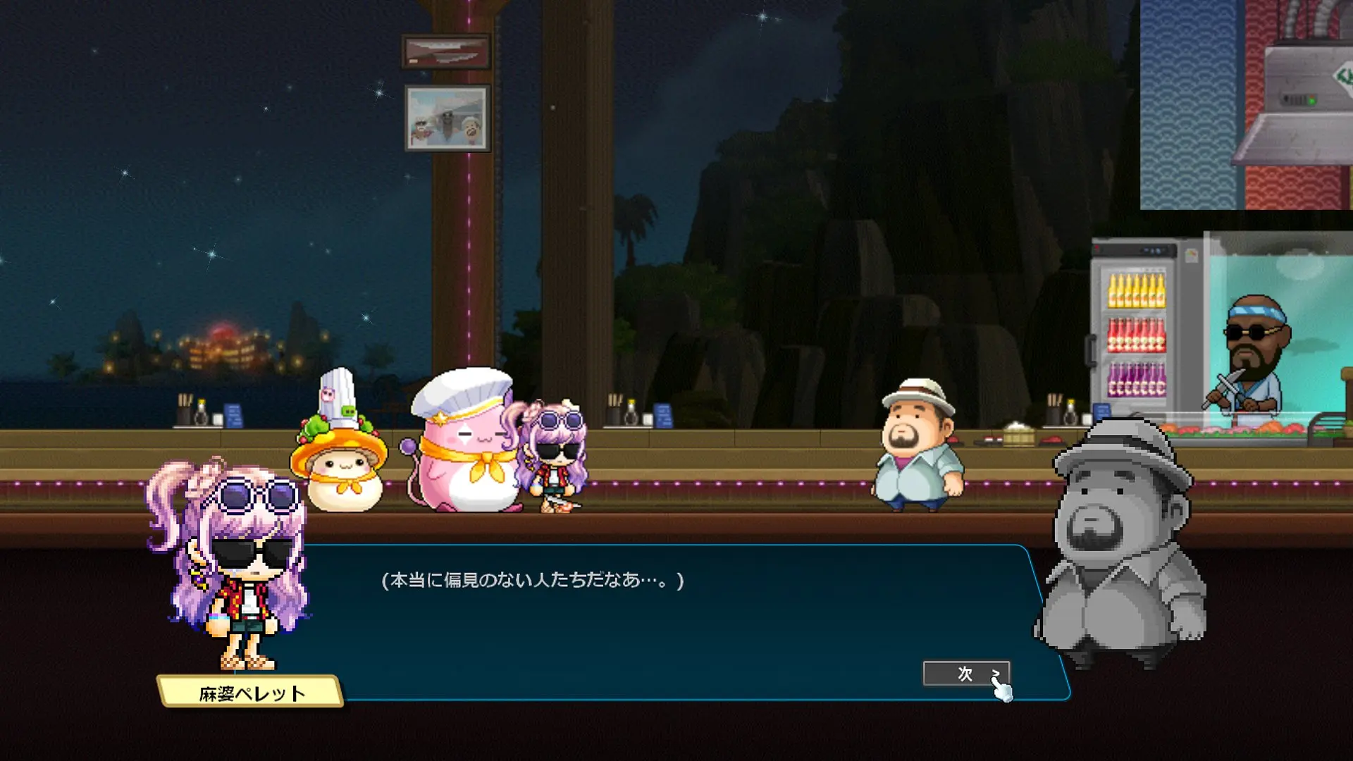 寿司を提供する方のミニゲームに登場するNPCの中には、期間限定イベントのNPCがチラホラ。