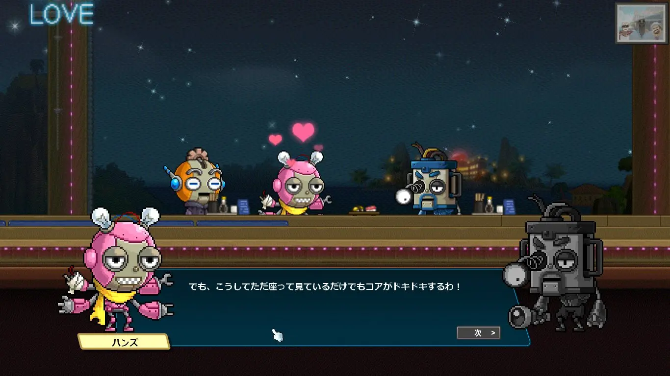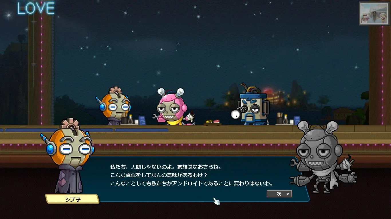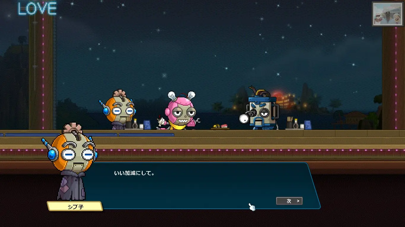 感情の芽生えに戸惑うシブ子ちゃんに優しく諭すプレイヤー。
