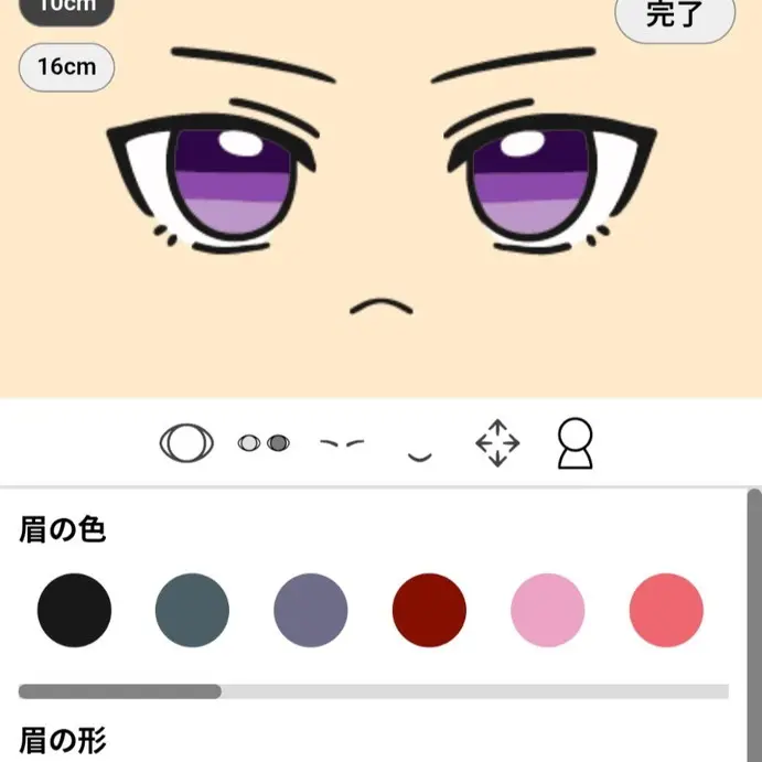 目・眉・口も同様にデザインします。目は左右対称ブラシを使うと楽です。